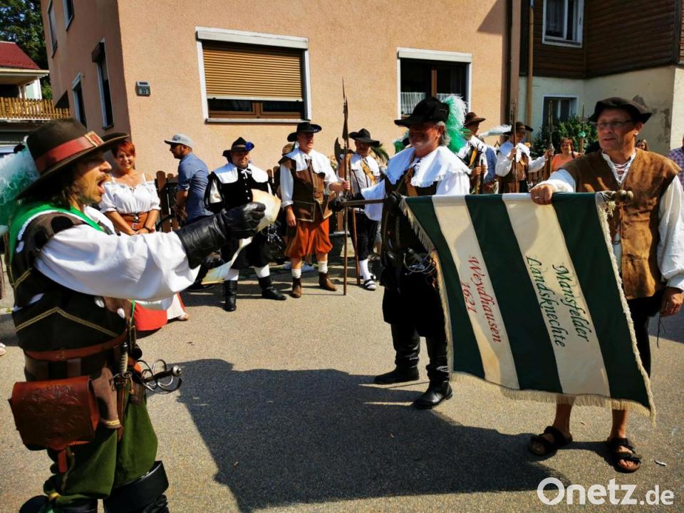 An den seit 400 Jahre bestehenden Waidhauser Frieden erinnern die Waidhauser vom 16. bis 18. Juli 2021 mit einem großen Friedensfest und laden dazu zu zahlreichen Veranstaltungen ein. Nach einem "ungeordneten" Exerzieren der mit Handwaffen ausgerüsteten Soldaten gab Hauptmann Andreas Ringholz der Kampftruppe das Kommando zum Abrücken ins Feldlager nach Waidhaus.