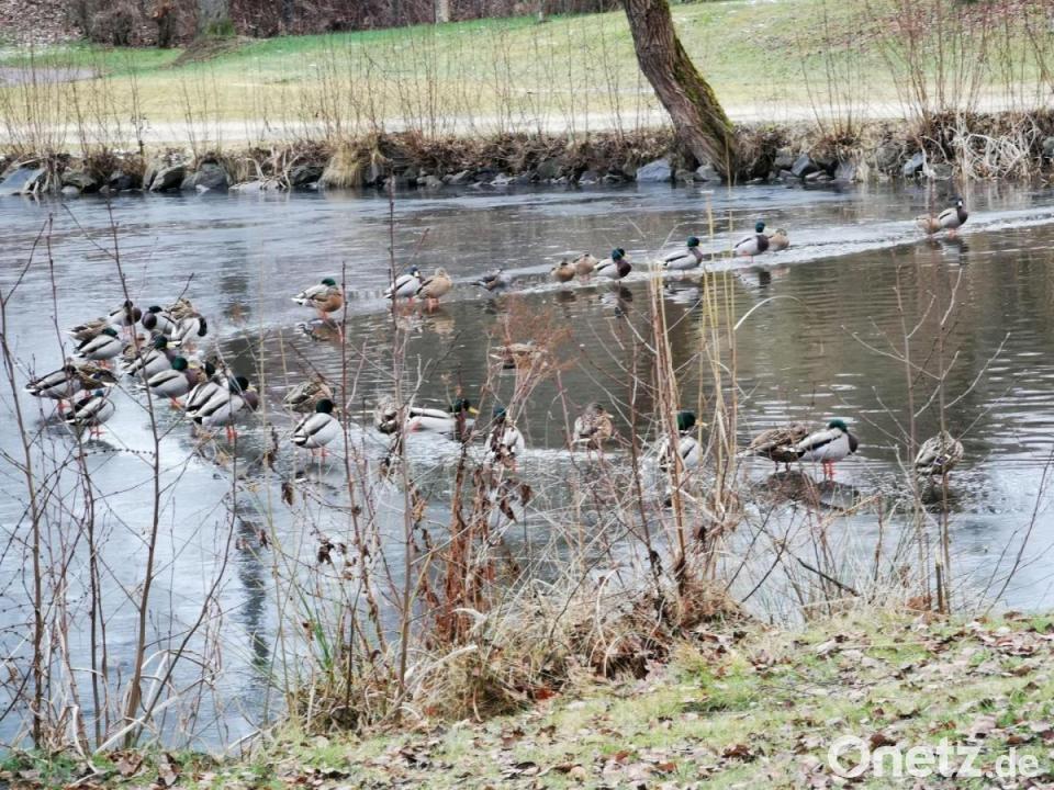 Gemächlich watscheln die Stockenten auf den dünnen Eis zu den offenen Wasserstellen und warten bis jemand etwas Futter ins Wasser wirft. Die Flügel höher schlagen lassen vor allem gut erhaltenes und schimmelfreies Brot oder Semmeln. Bereits eine Handbewegung genügt, um Leben in die Entenparade zu bringen. Der bunte Erpel und das graubraune Entenweibchen versuchen etwas von den Häppchen abzubekommen und dabei sind alle Mittel erlaubt. Kurz darauf ist die Hetzjagd nach Futter wieder vorbei und die Enten versammeln sich am Eisrand nebeneinander zur Parade und hoffen, dass von den Zweibeinern bald wieder jemand mit Futter vorbeikommt.