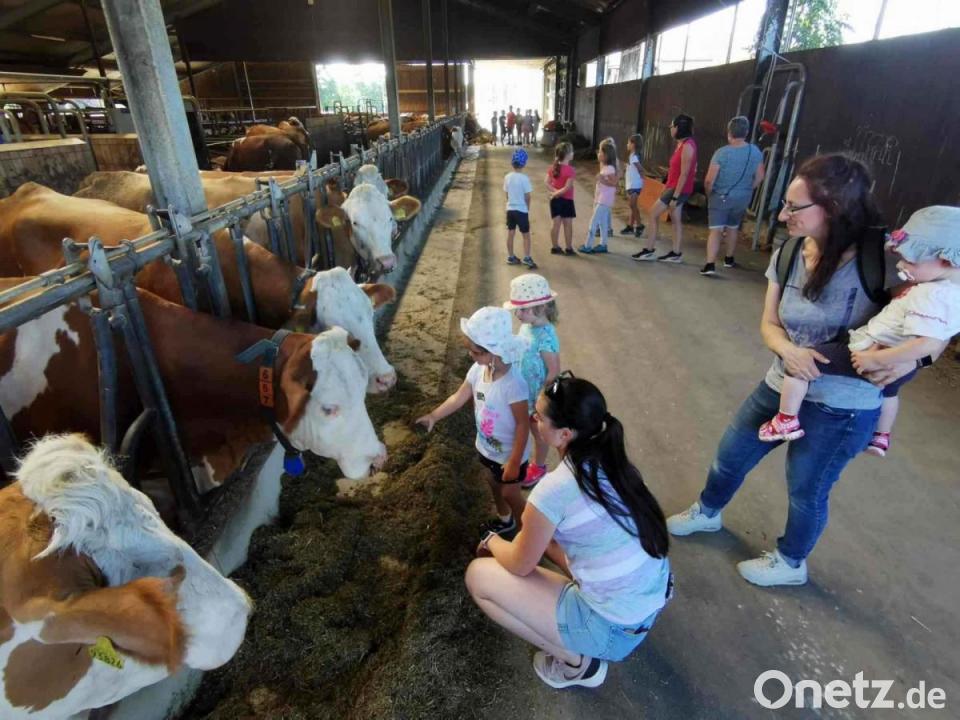 Die Einladung zu einem abwechslungsreichen Kinderferienprogramm durch die Eslarner Landfrauen um Ortsbäuerin Sieglinde Frischholz-Wazl nahmen 60 Kinder mit einigen Eltern gerne an. Der Erlebnisnachmittag auf dem Kleberhof in Thomasgschieß stand unter dem Motto: "Auf Du und Du mit Natur und Kuh". Bei der Stallführung erzählte Landwirtin und stellvertretende Ortsbäuerin Nicole Kleber von ihren "Mädels", die selbstständig der Reihe nach zum Melkroboter marschieren.