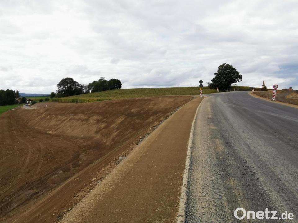 Bleiben wird die viel diskutierte, erhöhte Straßenböschung, die beim Unternehmen Hierold zwei und bei der Abzweigung in Richtung Thomasgschieß fast zehn Meter beträgt. An welchen Stellen aufgrund von Vorschriften eventuel Leitplanken angebracht werden müssen oder nicht, bleibt abzuwarten. "Die Erhöhung der Fahrbahn hat sich durch die Verstetigung der Gradiente ergeben, so dass ein Auf und Nieder der Straße sowie Sichtschatten, die die Strecke unübersichtlich und damit gefährlich machen, vermieden werden konnten", erläuterte auf Anfrage Baudirektor Gerhard Kederer vom Staatlichen Bauamt Amberg-Sulzbach. Durch die Fahrbahnerhöhung konnten an nicht einsehbaren Bereichen die vorhandenen Kuppen und Wannen beseitigt und eine maximale Neigung der Straße von 6,5 Prozent erreicht werden. Bei den Arbeiten wurden auf einer Länge von zwei Kilometer mit 23.000 Kubikmeter Erdreich gewaltige Mengen bewegt, wobei viel Erdreich durch die Fahrbahnabsenkung angefallen ist.
