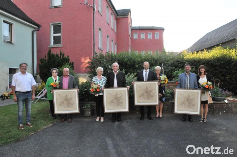 Als Abschiedsgeschenk überreichte Bürgermeister Gäbl den ausscheidenden Mitgliedern ein historisches Bild Eslarns aus der Zeit der ersten urkundlichen Erwähnung. Für Ehefrau oder Partnerin hatte er Blumen parat.