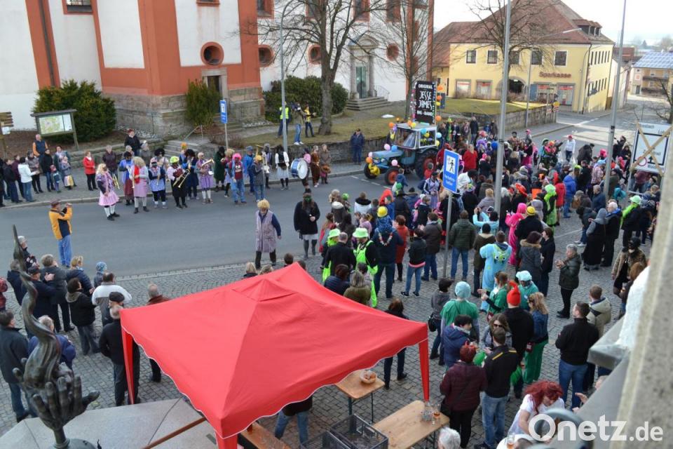 Am Rathaus vereinten sich die Gruppen zu einem Standkonzert und stärkten sich von den Strapazen mit Rebhuhnzoigl aus dem Brunnen. Da die Zugaben mit flüssiger Kost vergütet wurden, zeigten die Musiker ihre Spielfreude und gute Laune. Auf dem Besuchsplan standen während des Umzugs die beiden Banken, einige Geschäfte und Einrichtungen. Bei der AWO-Tagesstätte erwartete der AWO-Chef Fritz Möstl mit seinem rührigen Team auf der Terrasse die Maschkerer mit süffigem Zoiglbier und Musik. Für Möstl war dies eine gelungene Premiere für den Verkauf des im nächsten Jahr zu erwartenden "AWO-Zoigl".