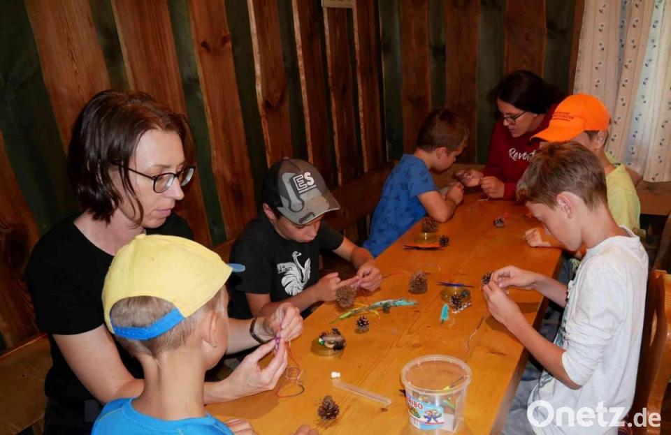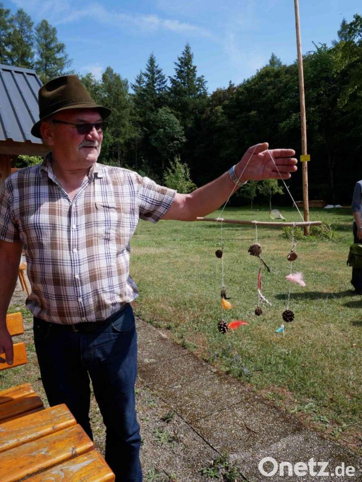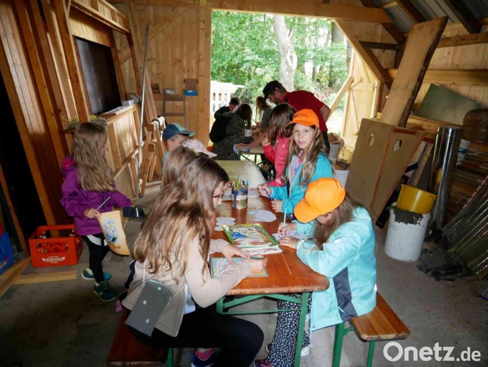 Im gemütlichen Holzhaus zeigte Manuela Forster mit ihrem Team, wie man aus Federn und Zapfen ein Windspiel herstellt. Stolz zeigte der Nachwuchs die Werke den Eltern. Den neu sanierten Bienenschuppen verwandelte Seibert in ein Atelier zum Malen. Leider waren Einblicke ins aktive Bienenleben in den Bienenkästen laut Seibert aufgrund des zu Ende gegangenen Bienenjahres und der Witterung nicht möglich. Die Bienen mögen momentan keine Störung und reagieren unkontrolliert, erklärte er.