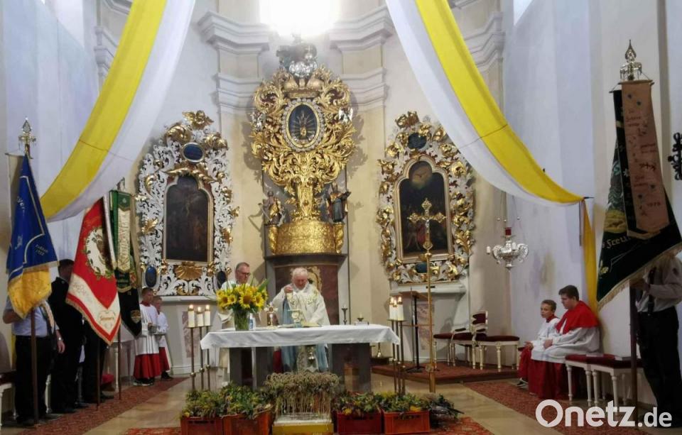 Die Blaskapelle, die sich aus Musikern verschiedener Gruppen zusammensetzte, spielte die Vereine und Organisationen musikalisch zur Kirche. Unter den Anwesenden waren Thomas Kleber, der zweite Bürgermeister, Bernd Reil, der dritte Bürgermeister, und einige Markträte. Auch Gäste aus den Nachbargemeinden und dem Nachbarland mischten sich unter die Kirchenbesucher. Pfarrer Erwin Bauer zelebrierte gemeinsam mit dem Festprediger, Diakon Andreas Dieterle aus Regensburg, die Eucharistiefeier am „Großen Frauentag“, einem besonderen Feiertag für Katholiken.