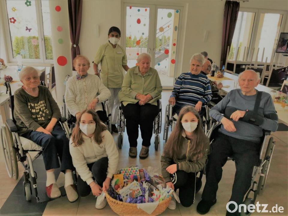Die Jugendlichen waren von der Idee mächtig begeistert und ließen sich in den letzten Tagen mit Malen und Basteln zahlreiche tolle Osterwerke einfallen. Die Werke konnten in der Pfarrkirche abgegeben werden und füllten gemischt mit Ostereier, kleinen Osterhasen und Süßigkeiten einen ganzen Korb. Stellvertretend für die Firmlinge überraschten Annalena Stahl und Leonie Reil in Begleitung von Katrin Stahl und Bernd Reil die Senioren in den Lebenswelten mit den bunt gemischten Ostergeschenken.