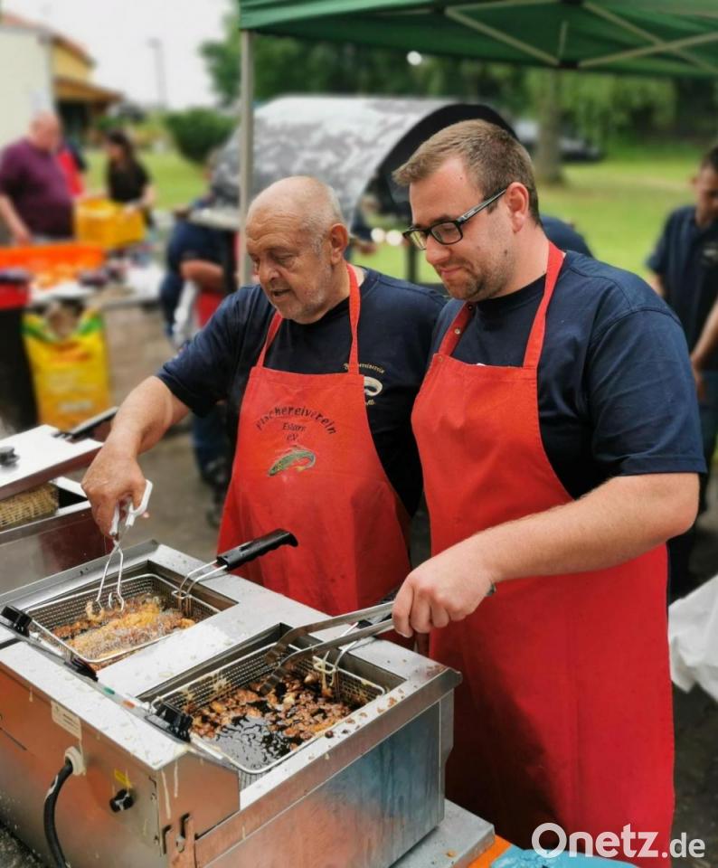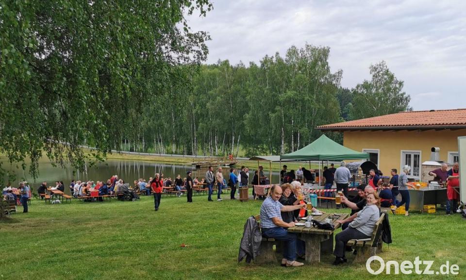 Bei herrlichen Sommerwetter feierten die Mitglieder des Fischereivereins mit vielen Gästen an der Freizeitanlage "Atzmannsee" das Fischerfest. Tage zuvor hieß es für die Vorstandsmitglieder um Vorsitzenden Karl Roth, die über 250 Fische zu bestellen und vorzubereiten. Am Pfingstsonntag merkte man am großartigen Besuch, dass die Menschen endlich mal wieder gesellig im Freien auf den Bierbänken sitzen und feiern wollten. An den Verkaufsständen stellte sich bereits ab 11 Uhr rege Betriebsamkeit ein. Der Renner war Zanderfilet im Bierteig mit Kartoffelsalat. Aber auch Steaks und Bratwürste sowie Makrelen und Forellen bruzzelten auf dem Rost. Sehr begehrt waren die von den Frauen gebackenen Kuchen. "Wir haben einen Kuchen mit Eierlikör, mit Banane und weitere verschiedene Sorten", informierten Beate Roth und Kerstin Krämer-Höreth am Kuchenstand im Fischerhaus. Die Fischer füllten an den Zapfhähnen die vielen Gläser mit Gerstensaft und mit alkoholfreien Getränken. Josef Fuchs versorgte die Gäste vom Fischerhäuschen aus mit ausgewählter Musik. Während sich die Eltern am Atzmannsee einen unterhaltsamen Tag gönnten, tobten sich die Kinder auf der großen Spielwiese ausgiebig aus.