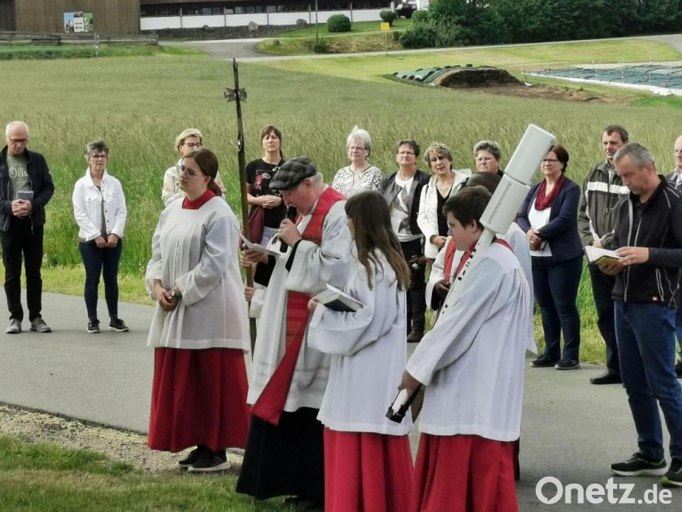 Die Flurprozession am Pfingstmontag zu Feldkreuzen erinnert an alte Bräuche und Kulturdenkmäler. Nach der Messe machte sich eine Glaubensgemeinschaft mit Vorbeter Gregor und Klaus Härtl zu Fuß von der Pfarrkirche "Mariä Himmelfahrt" auf den Weg zum Ortsteil "Steinboß". Die Flurprozession führten die Ministrantinnen mit dem Kreuz mit Pfarrer Erwin Bauer und Pfarrvikar Basil Bazir an. Die Gläubigen beteten um eine gute Ernte, besseres Wetter, Schutz vor Unwetter und um den Segen für Handwerker und Dienstleister. Aber auch der verantwortliche Umgang mit der Schöpfung Gottes und der Friede auf der ganzen Welt war Teil des Gebetes.. Einen kurzen Halt zum Gebet legten die Teilnehmer an den Flurkreuzen an der Busch-, Hasenbühlstraße und am großen Kreuz am Schlossberg ein. Nach der Rückkehr spendete Pfarrer Bauer den Segen.