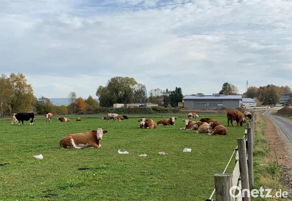 Kaum ist er damit fertig, liegen einen Tag später bereits die nächsten Fetzen auf der Wiese. Dort genießen zahlreiche Kühe das letzte Gras. Dabei könnten sie die Folien fressen und dabei gesundheitliche Probleme bekommen.