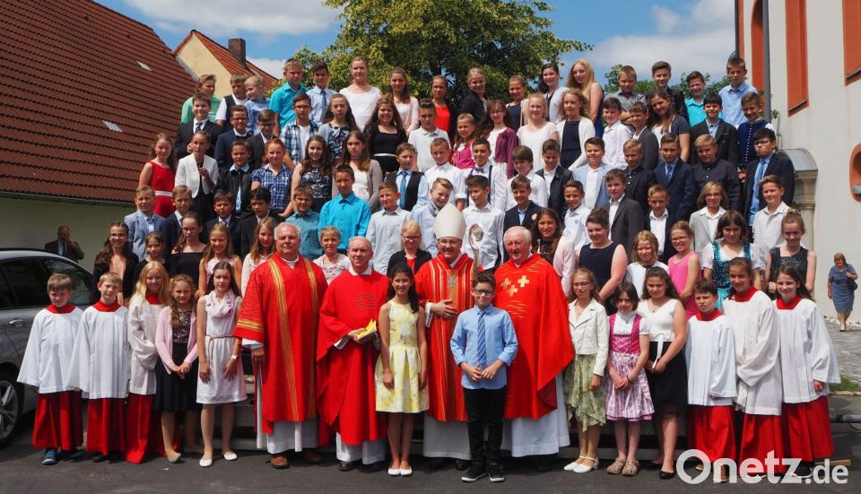 In der Pontifikalmesse in der Pfarrkirche "Mariä Himmelfahrt" spendete Voderholzer 39 Mädchen und Buben aus Eslarn sowie 46 aus Moosbach und Etzgersrieth das Firmsakrament. Das Papstlied "Wer glaubt ist nie allein" begleitete den hohen Würdenträger mit Pfarrer Erwin Bauer aus Eslarn, Pfarrer Josef Most und Diakon Herbert Sturm aus Moosbach beim Einzug durch den Mittelgang zum Altar. Die Firmung stärkt die jungen Menschen, die Eltern und Paten in ihrem Glauben und ist laut Pfarrer Bauer eines der schönsten Tage.