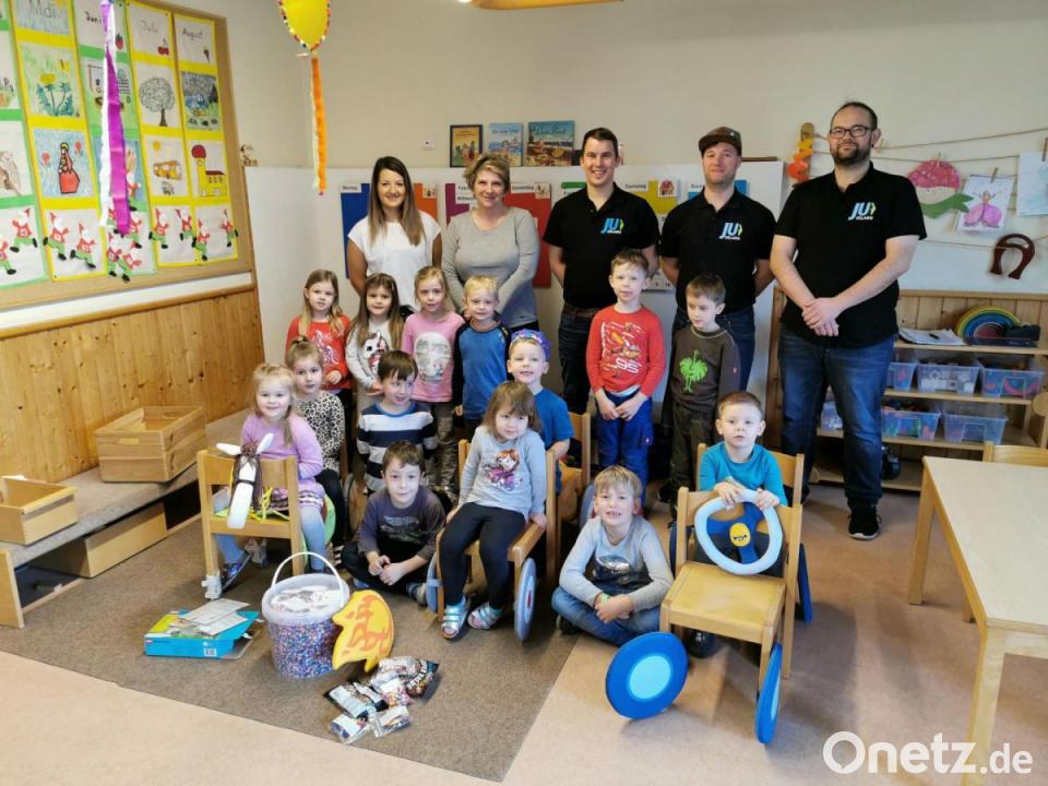 Bei der Übergabe wünschten Vorsitzender Stefan Rupprecht, Stellvertreter Andreas Karl, Kassier Michael Kleber und Verena Reindl allen Kindern viel Spaß beim Spielen. Leiterin Ramona Zangl dankte für die Spende.