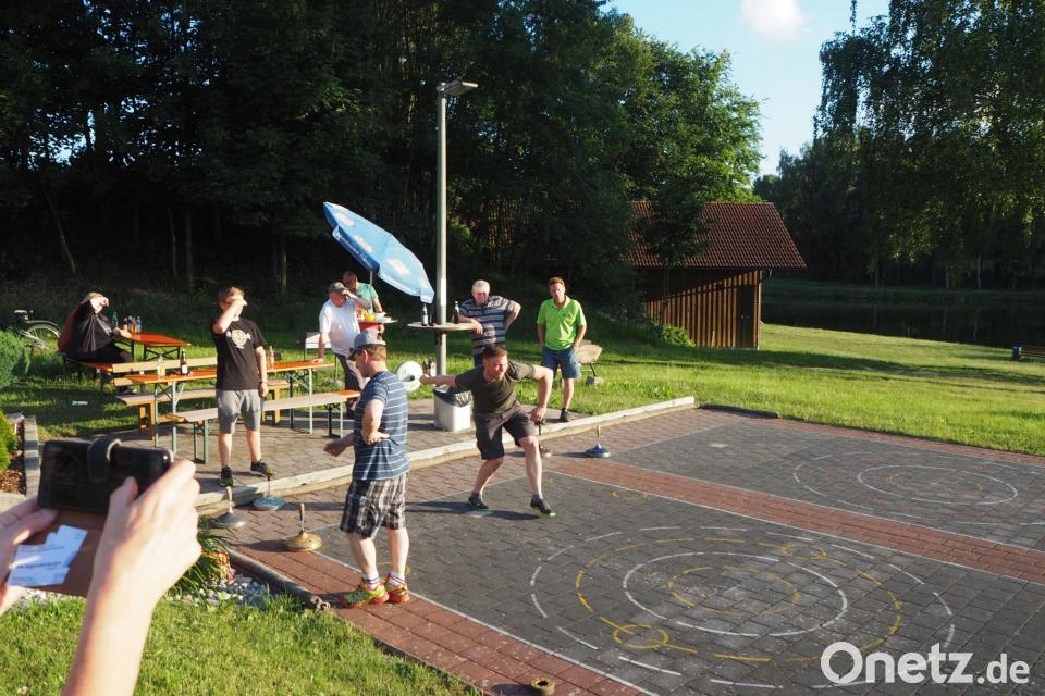 "Wo gibt es hier etwas zu essen", fragten die Wallfahrer die Stockfreunde. Der Vorstand des Wintersportvereins lud die Familie spontan zur Sommerparty und zu einem Imbiss ein. "Sind alles Produkte aus unserer Heimat", fügten die Sommersportler an. Die Großstädter aus Essen waren an der für sie weniger bekannten Sportart sehr interessiert, und ihr Sohn Martin durfte einige Probeschübe machen. "Ein wahres Naturtalent, schade das der junge Mann so weit weg wohnt, der würde zu uns passen", fanden die Eslarner.