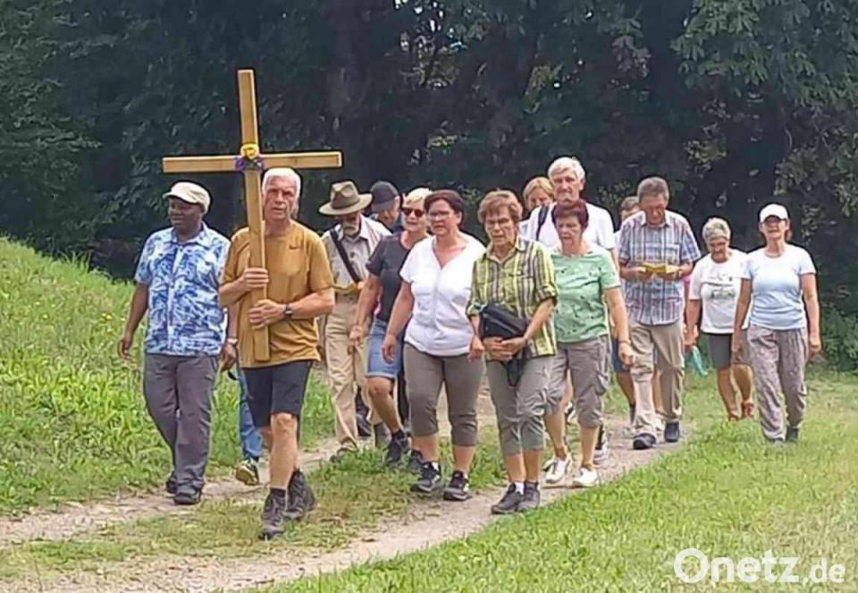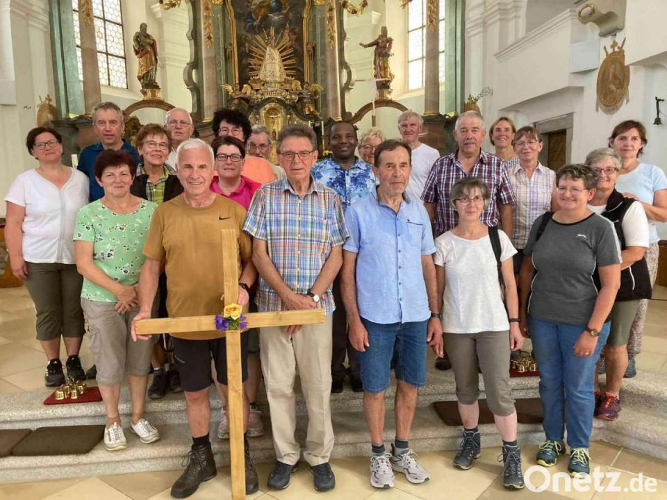 Seit 20 Jahren pilgert die Kolpingfamilie aus Eslarn zum Gnadenbild der Gottesmutter auf dem Fahrenberg. Die Pilgerführer Agnes und Klaus Härtl hatten alles bestens vorbereitet. Unter die 21 Wallfahrer mischte sich ein Ehepaar aus Schmidgaden. Nach dem Pilgersegen in der Pfarrkirche wünschte Pfarrer Erwin Bauer allen einen unfallfreien Weg. Für die Sicherheit sorgte Klaus Härtl. Bim Tragen des Kreuzes aus Birkenholz wechselten Karl Schmid, Egbert Kohl und Josef Bösl ab.