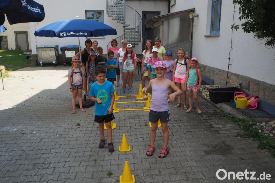 Mit Hilfe von Markus Dimper vom Turn- und Sportverein, der als Geschäftsführer der Raiffeisenbank auch einige Sonnenschirme herbeischaffte, konnten einige Pylonen und Kegelhürden organisiert und im Schatten zu einem kleinen Hindernisparcour aufgebaut werden. Unterdessen bereiteten Michaela Zierer, Monika Maier, Olga Uhlemann, Gabi Lindner und Karin Dimper vielfältige Spiele vor. Für die fünf Damen von der Gemeindebücherei ist Teamarbeit kein Fremdwort und so klappten in der Gemeinschaft auch alle Vorbereitungen. Trotz der Hitze bereitete das Ferienprogramm an den sechs Spielestationen den Kindern nicht nur viel Spaß, sondern es kam auch Spannung auf.