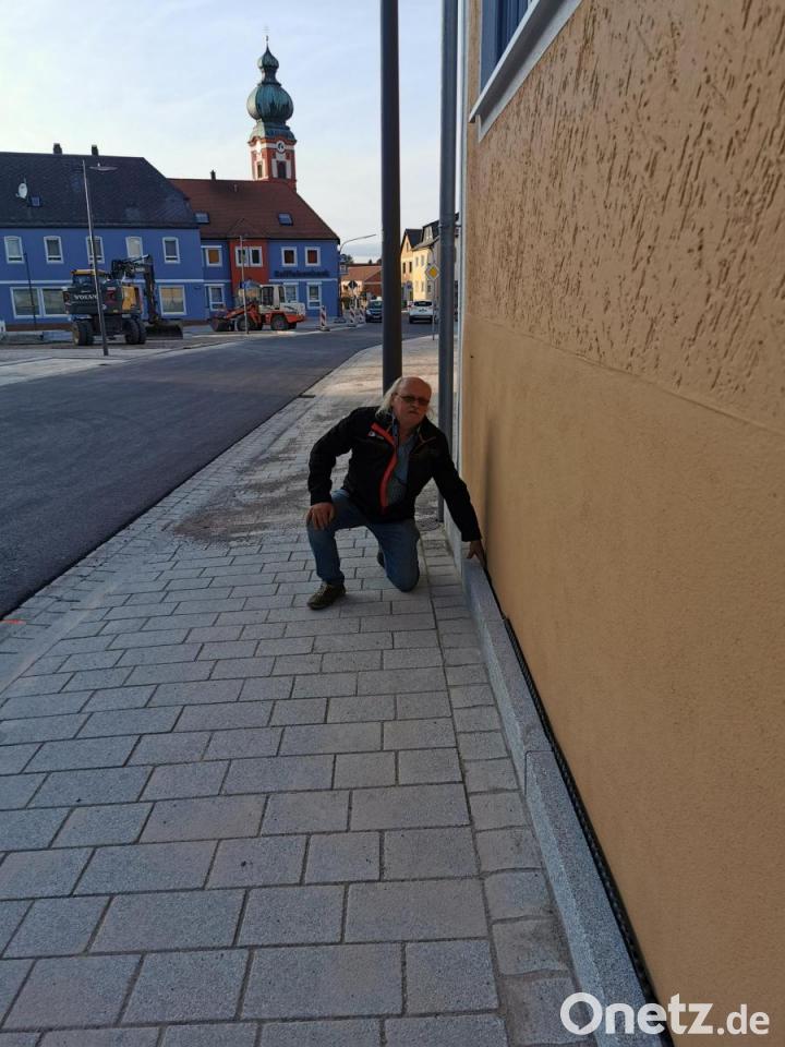 Zusätzlich zu dem Riss in der Fassade entdeckte Meckl einen zwei bis drei Zentimeter breiten Spalt zwischen Hausmauer und Steinfliesen. Diese hatten die Arbeiter angebracht, um den neu gepflasterten Gehweg zum Haus hin abzuschließen. Meckl erklärt: "In den verbleibenden Spalt dringt Wasser ein und bei Frost sprengt es an den Stellen den Außenputz von der Mauer." Um Nachbesserungen habe er vergeblich gebeten. Auch sein Vorschlag, über der Öffnung zum Abfluss des Regenwassers ein kleines Blechdach anzubringen, sei laut Bürgermeister aus Kostengründen nicht möglich. "Bautechnisch ist dies so in Ordnung", erklärte dieser auf Anfrage und bezog sich dabei auf die zuständige Architektin. "Technisch nicht nachvollziehbare Wünsche können nicht erfüllt werden, weil unter anderem die Regierung als Fördergeber widersprechen würde und die Verwendung öffentlicher Gelder das nicht rechtfertigt." Mit dieser Aussage will sich Meckl jedoch nicht abfinden und fordert weiterhin eine einvernehmliche Lösung.