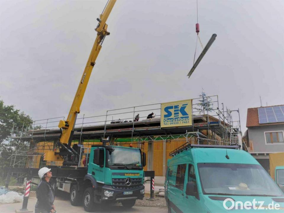 Bei der Hebfeier am Feuerwehrhaus zogen Bürgermeister Reiner Gäbl und Architekt Markus Goldhammer eine Zwischenbilanz. Den Richtspruch sprach Zimmerermeister Thomas Riedl aus Waldthurn auf dem Dach. "Am Bau wirken 30 Firmen mit und wir sind im Zeitplan", informierte Gäbl. Der aktuellen Zeit entsprechend werden aus drei jetzt fünf Stellplätze, dazu eine Werkstätte, separate Umkleide-, Wasch- und WC-Räume. Die vorab geschätzten Kosten von 1,5 Millionen Euro stiegen laut Gäbl auf knapp 2,3 Millionen Euro. Wegen nicht ausreichender Tragfähigkeit war eine zusätzliche Fundamentverstärkung und die Beseitigung von Bauaushub erforderlich. Beim Aushub kam es auch zu Knochenfunden vom ehemaligen Friedhof.