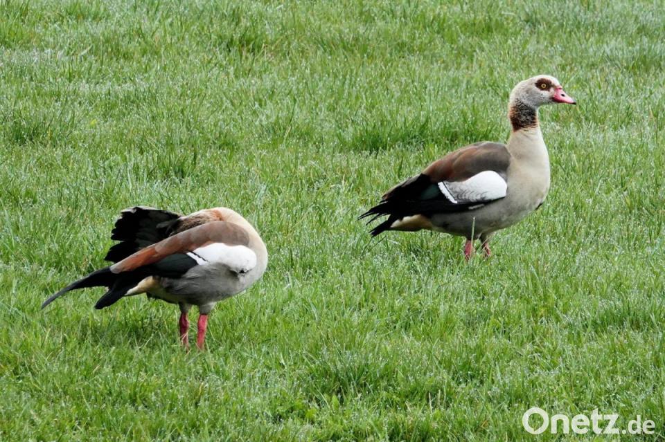 Kurze Zeit später rastete auch ein Nilgans-Pärchen auf der Wiese. Die Nilgänse brüten schon lange in Deutschland in wärmeren Gebieten und sind in letzter Zeit auch bei uns anzutreffen. "Sie breiten sich auch in unserer Region allmählich aus. Es sind sogenannte Halbgänse, also halb Gans, halb Ente", erklärt Schmid. Eine Brut wurde in der Region allerdings noch nicht nachgewiesen.