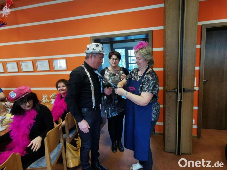 Die Polizei-Hostessen mit pinkfarbenen Mützen und Boas von der Rathausverwaltung nahmen den abgesetzten Rathauschef in ihre Mitte und sorgten für eine sichere Verwahrung ihres Häuptlings. Mit den musikalischen Klängen von Alleinunterhalter Matthias Hofmeister aus Tröbes wurde bis zur Mittagszeit gesungen, geschunkelt und getanzt.