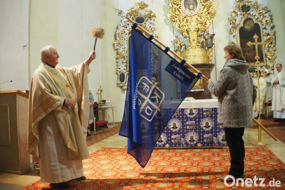 An der Eucharistie in der Pfarrkirche zu Ehren der Heiligen Elisabeth nahmen zahlreiche Mitglieder des katholischen Frauenbundes und Pfarrangehörige teil. Durch die Anwesenheit des italienischen Stadtpfarrers Mauricio aus Verona und dem indischen Pfarrvikar Bivin sprach Pfarrer Erwin Bauer von einer internationalen Messfeier. Die Predigt war der Heiligen Elisabeth gewidmet, die als barmherzige Kämpferin trotz ihres Reichtums als "Mutter der Armen" und aufgrund ihrer ausgeprägten Barmherzigkeit für ihre Hilfsbereitschaft und Nächstenliebe bekannt war. "Sie war ein Vorbild für alle Frauen" stellte der Geistliche fest. An die verstorbenen Mitglieder des Frauenbundes erinnerte Anna Brenner und Pfarrer Bauer segnete im Anschluss die neue Vereinsfahne des katholischen Frauenbundes.