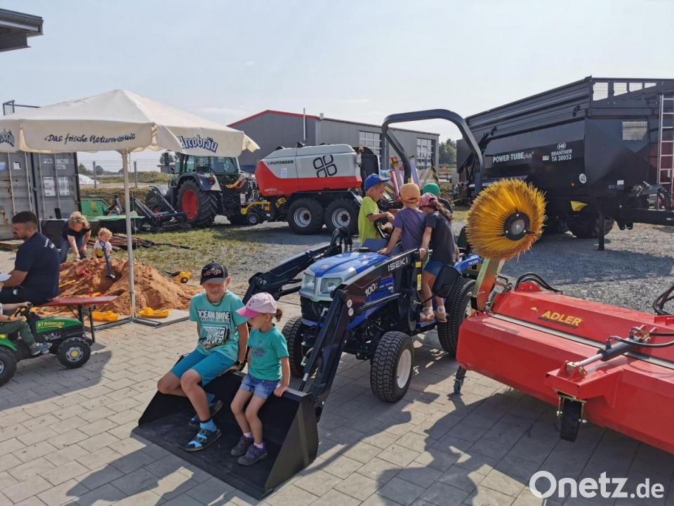 Zudem sorgten Kinderfahrzeuge und ein abgelagerter Sandhaufen mit kleinen Spielgeräten unter den Mädchen und Buben für Kurzweil. Die Erwachsenen bestaunten vor allem die drei nebeneinander aufgereihten Lanz-Bulldogs. Kenner bemerkten zum tuckernden Motorengeräusch: "Das ist Musik in meinen Ohren." Bernhard Kaiser hatte einen Lanz D 3506 mit Baujahr 1940 und 25 PS restauriert und erstmals ausgestellt. "Vor zwei Jahren war ich mit dem größeren Lanz mit 50 PS beim Feldtag." Den Lanz hatte sein Vater Albert Kaiser als Schrotthaufen erworben, dann stand er rund 50 Jahre und wurde in unzähligen Stunden von Kaiser wieder instand gesetzt.