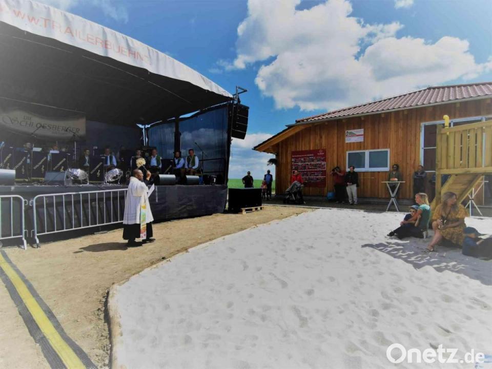 Im Namen des Aiderbichlteams begrüßte Michael Meckl junior die Ehrengäste und dankte allen Handwerkern, besonders Zimmerer Josef Rauch und Architekt Kleierl, für das Werk. Die Segnung des 50 Meter langen Holzbaus übernahm Pfarrvikar Basil, der die Taube als Symbol des Heiligen Geistes und des Friedens sieht. Als Freund der Familie Meckl sprach zweiter Bürgermeister Thomas Kleber von einem Alleinstellungsmerkmal, das nachhaltig gebaut worden sei und mit dem der Markt werben könne. Nach einem Dank an alle Tierpaten überreichte Kleber an Meckl einen Zuschuss.