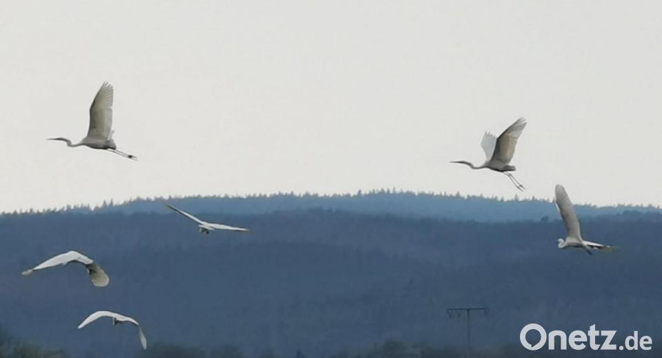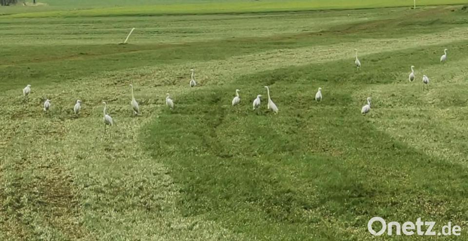 Eine große Rastgemeinschaft von rund 40 derartigen Großvögeln war mit ihren weißen Federkleidern, schwarzen Schnäbeln und einer Flügelspannweite von 190 Zentimetern für kurze Zeit auf einer Wiese zu beobachten. Das reinweiße „Brautkleid“ wirkte in der grünen Feuchtwiese wie ein leuchtender Tupfer, so dass die Vögel schon von weitem auffielen.