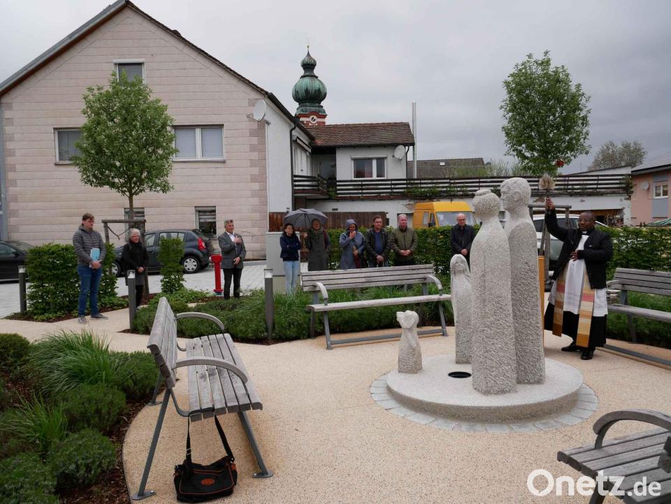 Alleine in Eslarn konnte das Investitionsvolumen von gut 13 Millionen Euro für verschiedene Projekte mit 5,4 Millionen Euro unterstützt werden. "Wir sind davon überzeugt, dass die Gelder hier gut und richtig angelegt sind", fügte Schmid an. Im Anschluss segnete Kaplan Basil Bazir Ngwega den "Kleinen Hofgarten" mit der Statuengruppe.