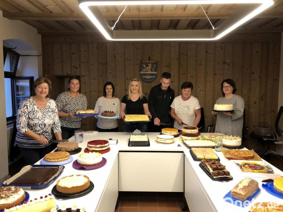 Nach dem Anliefern der Leckereien glich der Sitzungssaal im Rathaus einer Konditorei. 67 Kuchen und Torten wurden auf 110 Tüten verteilt. Die Verkaufsaktion am Rathaus war ein Renner, vor allem nach den Gottesdiensten. „Das Kaufinteresse war super und wir haben alles verkauft“, freute sich Cheforganisatorin Laura Roth. Vor allem die Familien versorgten sich mit einer oder zwei Kuchentüten, so dass die süße Beilage zum Sonntagskaffee gesichert war. Der Erlös wird für die Finanzierung der Festkleider verwendet.