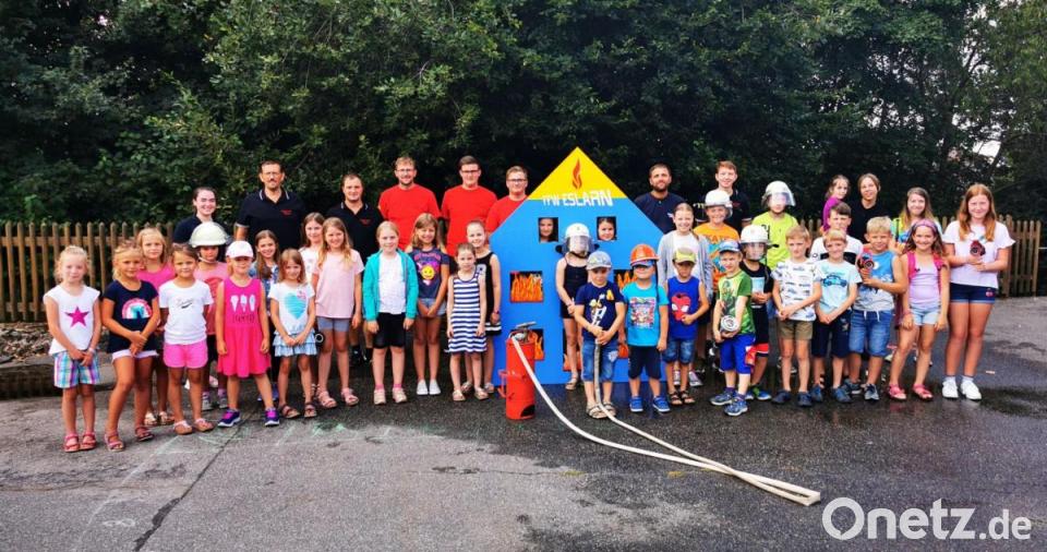 Die Mädchen und Buben waren vom Kinderferienprogramm der Feuerwehr begeistert. Am Feuerwehrhaus erhielt der Nachwuchs einige Einblicke in die Ausstattung, und mächtig beeindruckt bestaunte der künftige Feuerwehrnachwuchs die großen roten Feuerwehrautos. Zweiter Kommandant Georg Rauch und Vorsitzender Jürgen Bösl zeigten mit den Feuerwehrfrauen und -männern den jungen Besuchern nicht nur was Feuerwehrleute an Einsatzkleidung tragen, sondern sie wiesen auch auf die unterschiedliche Ausrüstung hin. Die Helme der Jugendfeuerwehr waren zwar noch ein wenig zu groß, aber bis zum Eintritt in die Feuerwehr mit 14 Jahren ist ja noch genügend Zeit. Mächtig Spaß machte das feuchtfröhliche Zielspritzen mit der Kübelspritze auf das kleine Spielhaus.