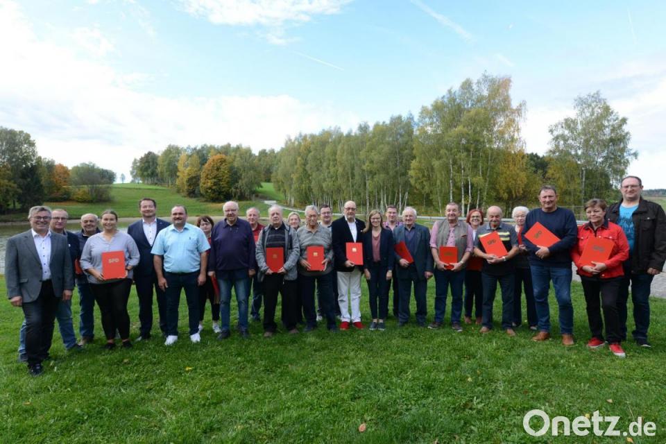 Der Markt Eslarn feierte am Sonntag seine Kirchweih. Der SPD-Ortsverein lud erstmals zu einem Frühschoppen ein, um in diesem Rahmen langjährige Mitglieder zu ehren. Insgesamt 41 Mitglieder hätten geehrt werden können, ein Teil davon hatte aus privaten und gesundheitlichen Gründen jedoch abgesagt. Geehrt wurden für 50 Jahre Treue Horst Forster, Günther Hierold, Alfred Hüttl, Fritz Möstl und Georg Zierer senior, für 40 Jahre Horst Ebenhöh, Bruno Lang, Jürgen Salomon und Brigitte Warta, für 30 Jahre Erika Bauer, Rosemarie Lang, Gerlinde Liegl und Ulrike Möstl, für 25 Jahre Gerald Grötsch und Beate Roth, für 20 Jahre Karl Brenner, Karl Roth und Tanja Zierer und für zehn Jahre Mitgliedschaft Josef Fuchs, Florian Pfannenstein, Laura Roth und Georg Zierer.
