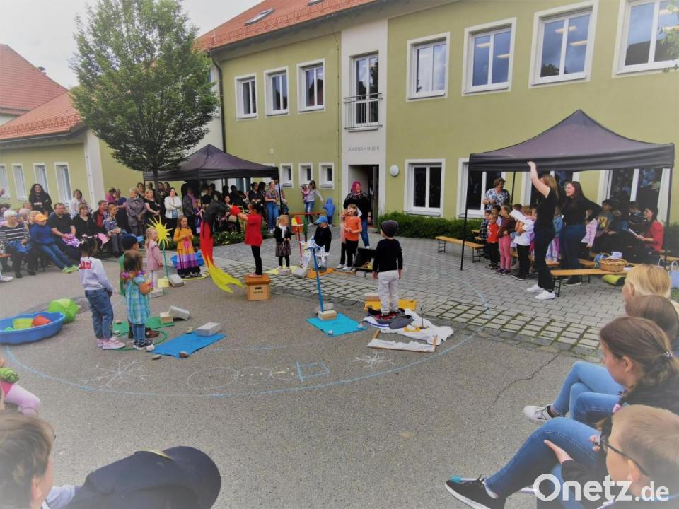 Ein Höhepunkt war die Aufführung "Vier Jahreszeiten" der Kinder der katholischen Kindertageseinrichtung auf der gesperrten Poststraße. Nach einer kurzen Begrüßung durch Leiterin Ramona Zangl sangen die Eisbären- und Zwergenkinder mit den pädagogischen Fachkräften im Chor "Januar, Februar, März, April, die Jahresuhr steht niemals still". Im Kreis zeigten die Sonnenblumen- und Eisbärenkinder mit Symbolen und im Spiel die vier Jahreszeiten. Die Boten des Frühlings sind Blumen und die erwachende Tierwelt, im Sommer sind warme Badetage und Eis angesagt. "Die Sommerkinder freuen sich auf Hula-Hoop mit braungebranntem Bauch und wollen spielen irgendwo am Strand", sangen die Kleinen.
