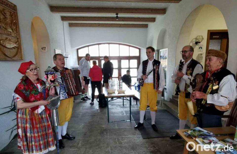 Mit der typischen Chodentracht zeigten die Repräsentanten die tschechische Folklore im Chodenland, dem ehemaligen westböhmischen Landstrich. Der Vater des Leiters, Antonin Konrady, gehört in Tschechien zu den besten Dudelsackspielern und feierte kürzlich seinen 92. Geburtstag. "Er wollte unbedingt mit seiner Teufelsgeige dabei sein", stellte sein Sohn fest.