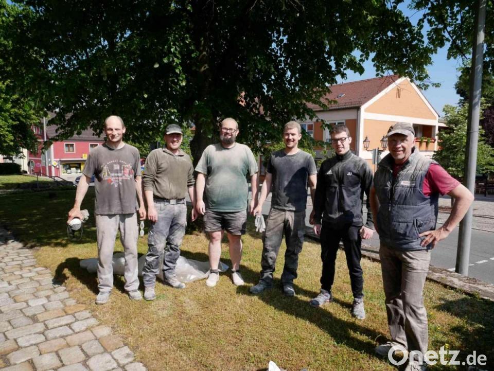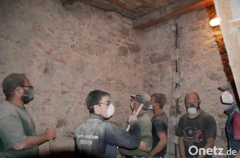 "Die vormittags begonnenen Arbeiten dauerten bis in den frühen Nachmittag." Da es eine sehr staubige Angelegenheit war, waren Mund-Nasen-Masken unverzichtbar. Eine leckere Brotzeit von Pfarrer Erwin Bauer und Kirchenrätin und Mesnerin Waltraud Karl verschaffte dem fleißigen Trupp während einer Verschnaufpause wieder neue Energie. Nach der arbeitsintensiven Vorreinigung übernehmen die Arbeiter der Baufirma Kumschier maschinell die Verputzarbeiten. Für die Endreinigung nach dem Verputzen wird dagegen Marktrat Georg Zierer einen ehrenamtlichen Trupp aus SPD- und Juso-Mitgliedern zusammen stellen.