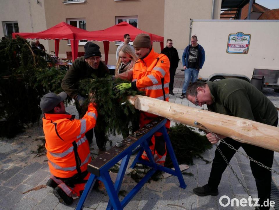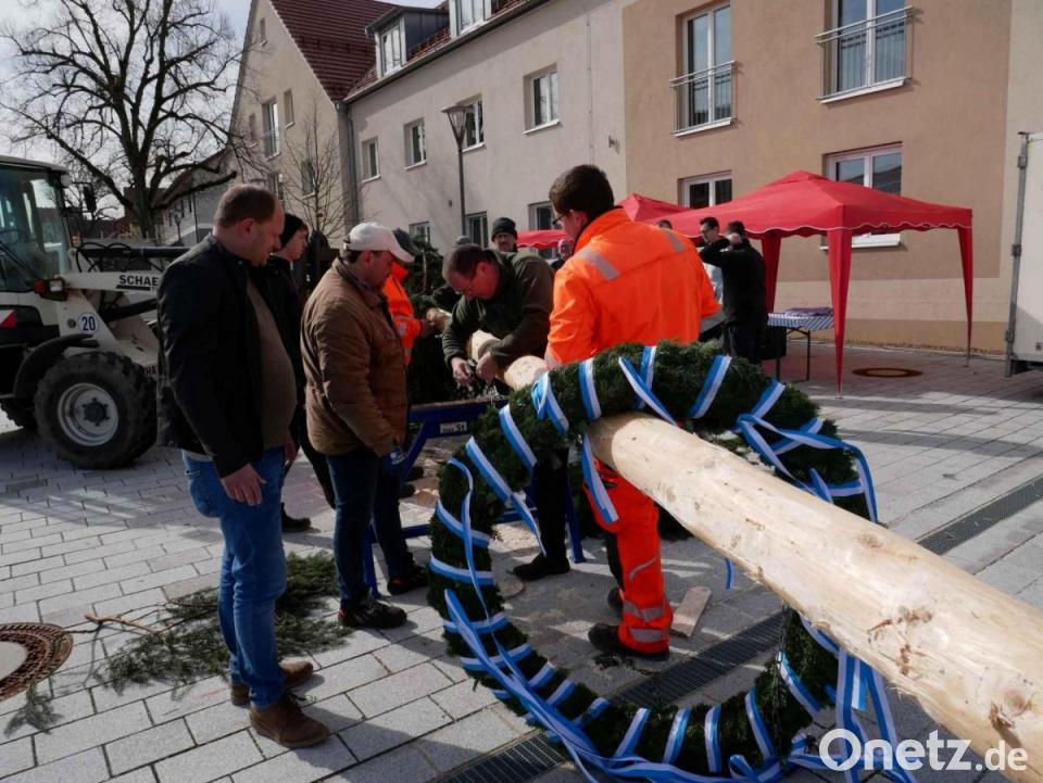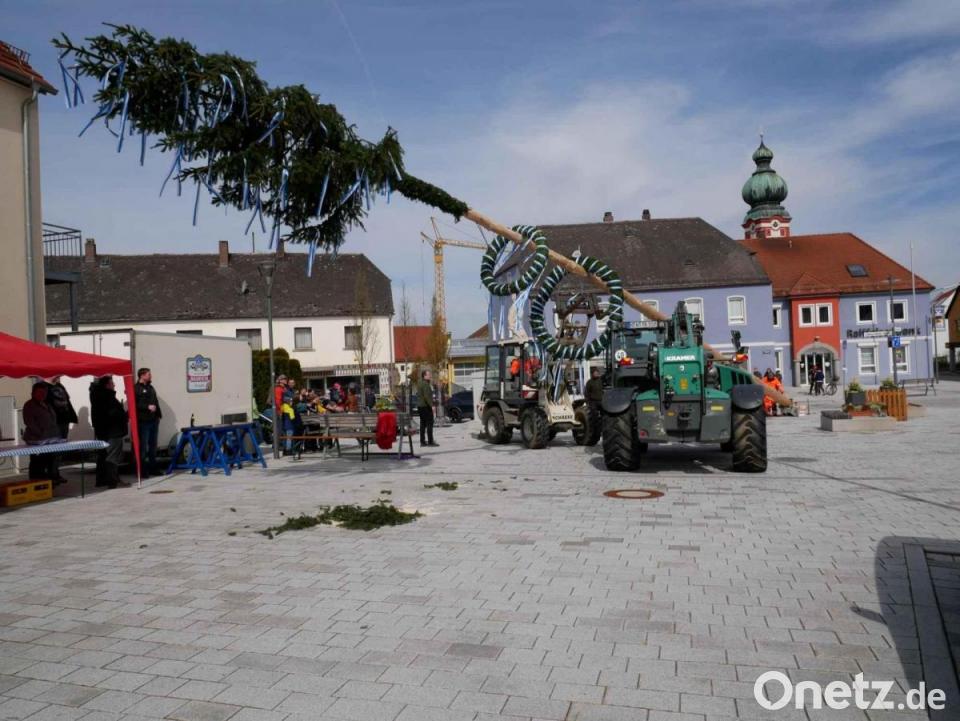 In einer solidarischen Arbeitsgemeinschaft zeichneten Mitarbeiter vom Gemeindebauhof, Mitglieder der Freiwilligen Feuerwehr und des SPD-Ortsvereins unter Organisationsleiter Marktrat Georg Zierer für das Aufstellen des Maibaumes verantwortlich. Maschinell unterstützte zweiter Bürgermeister Thomas Kleber.