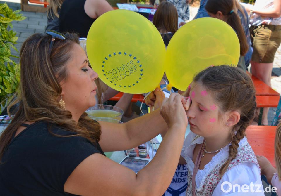 Am Sonntag erhielt der Backofen von Pfarrer Moses Gudapati bei einem Gottesdienst, den die Kindergarten- und Schulkinder von Etsdorf mitgestalteten, dann auch den Segen. Beim weltlichen Teil kamen die Kleinen wie die Großen auf ihre Kosten. Für die Kinder gab es eine Spielestraße mit unter anderem Kinderschminken, Dosenwerfen und dem Gestalten von Baumscheiben mit Glasmurmeln (darauf die Gravur "750 Jahre Etsdorf") sowie Kasperltheater-Aufführungen im Haller-Mare-Hof. Im alten Tante-Emma-Laden konnten sich die Kinder Süßigkeiten kaufen. Für die Großen gedacht waren vor allem die geführten Dorfrundgänge, die Kirchenführungen, eine Tombola, die Modellfliegerausstellung vom Modellflugsportclub Amberg, die Bulldog-Oldtimer-Ausstellung der Oldtimerfreunde Högling und die Dorfrundfahrten mit dem Feuerwehrauto. Klein und Groß hatten ihren Spaß an der Fotobox, die für das Fest zwei Tage lang kostenlos zur Verfügung stand. Wirtshausmusikanten sorgten ohne Verstärker und Elektronik für das richtige Flair. Und auch die Kirwa-Kinder hatten nochmal einen Auftritt.