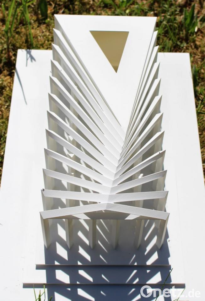 Diese Erkenntnis nahm Einfluss auf seinen Entwurf. Der Architekt erstellte ein 2D-Bild, um es dann mathematisch per Computerprogramm in eine dreidimensionale Form umzukalkulieren. Er hat die Software über 5000 Variationen errechnen lassen und das Original somit deformiert. Die Proportionen eines historischen Tempels der Vergangenheit stimmen aber noch überein. Denn, es gibt nichts Neues unter der Sonne. "Das Ganze basiert auf einer strengen Ordnung und ist nur eine aus Milliarden von Möglichkeiten."