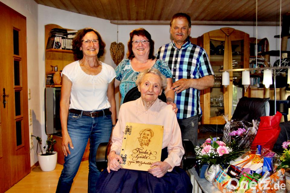 An ihrem 90. Geburtstag freute sich Frieda Schicker über den zahlreichen Besuch von Nachbarn, Freunden und Verwandten. Für die Gemeinde Etzelwang gratulierte 2. Bürgermeisterin Lydia Zahner, die neben Glückwünschen und einem Geschenk auch ein Präsent von Landrat Richard Reisinger überreichte.