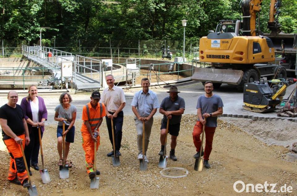 Die neue Einrichtung schließt unmittelbar an das Büro- und Technikgebäude der Kläranlage an. Die Arbeiten starteten mit dem Rückbau eines der Schlammbehälter, der für die Trockenanlage Platz machen musste. An der so entstandenen Baugrube trafen sich Vertreter aus Politik, Gemeinde und der Baufirmen und nahmen den symbolischen Spatenstich vor. Landtagsabgeordneter Harald Schwartz versicherte, dass der Förderantrag noch während des Geltungsbereichs mit der günstigen Regelung aufgenommen werden konnte, so dass die Gemeinde Etzelwang bei diesem Projekt in den Genuss von 70 Prozent der zuschussfähigen Kosten komme. Bürgermeister Roman Berr dankte dem Landtagsabgeordneten, der schon frühzeitig in die Vorbereitungen eingebunden wurde, wie es hieß. In seinen Dank bezog der Bürgermeister das Wasserwirtschaftsamt, die Verwaltungsgemeinschaft Neukirchen, die Gemeindebediensteten und das Planungsbüro Seuss Ingenieure ein.