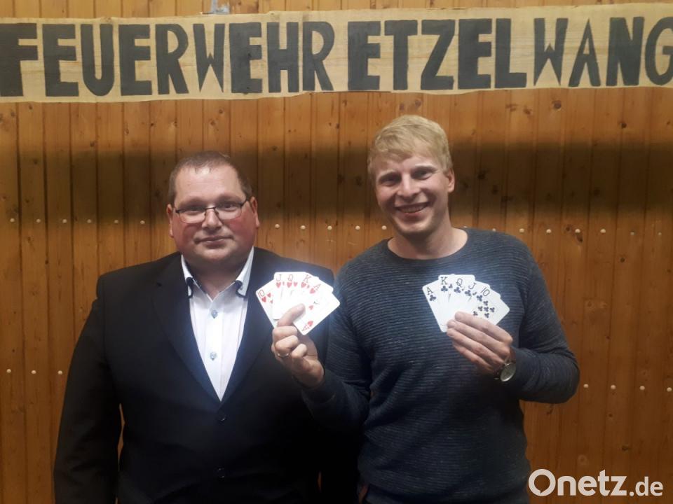 Die Wahrscheinlichkeit für einen Royal Flush, das höchste Blatt überhaupt beim Poker, liegt bei verschwindend geringen 0,003 Prozent. Christoph Pirner aus Lehenhammer schaute bei der zwölften Etzelwanger Pokermeisterschaft an einem Abend gleich zwei Mal auf solche Hände.