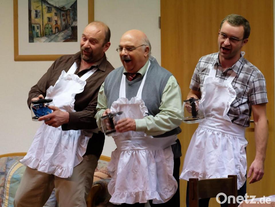 Schon der Anblick von Willi Hubbele (Walter Voß), einem aufrechten und gestandenen Mann, der sich allerdings nur sehr schwer gegen seine Frau Ella (Maria Smola) behaupten konnte, und seinen Freunden Friedrich Beisel (Martin Glökler) der mit seiner Ricarda (Melanie Dick) genau so geplagt war wie Peter Faber (Josef Beer) mit Ehefrau Gundi (Sandra Hirmer), löste wahre Lachsalven aus. Die drei Pantoffelhelden spielten ihre Rolle hervorragend. Sofort war klar, dass Willi und seine Freunde wohl im Berufsleben gestandene Männer waren, ihren Frauen hatten sie allerdings relativ wenig entgegenzusetzen. Kochen, waschen, bügeln und den Rest der Hausarbeit erledigten die drei Helden neben ihrem normalen Berufsleben, während sich die Ehefrauen ihrer Lieblingsbeschäftigung, der Erziehung ihrer Männer, widmeten.