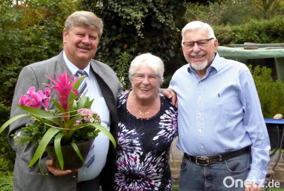 Bürgermeister Martin Schregelmann gratulierte dem Paar, das sich dankbar für sein bisheriges gemeinsames Leben zeigte, und überreichte eine Blumenschale. Das Ehepaar Wolfram war am 5. Oktober 1959 in Weiden Herz-Jesu vor den Traualtar getreten. Kennengelernt haben sich der gebürtige Weidener, ein gelernter Großhandelskaufmann, und seine in Schlesien geborene Frau, die 1945 nach Weiden kam und von Beruf Einzelhandelskaufmann war, beim Flanieren in der Max-Reger-Straße und als passionierte Sportler in der Gaststätte Glötznerstüberl am Hammerweg. Heinrich war Ringer und Gewichtheber beim Athletenclub des Turnerbunds und spielte bei den „Elf Freunden“ Fußball, Brigitta war als Faustballerin und Leichtathletin beim selben Verein und bei der SpVgg aktiv. In früheren Jahren war sie zudem KAB-Diözesan- und Ortsvorsitzende sowie Vorsitzende der Frauen-Union.