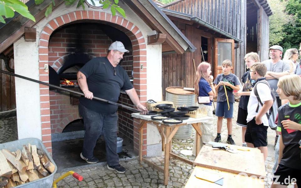 Das Kontrastprogramm vollendete der fünfte Treff am Siedler-Backofen. Zu Flammkuchen präsentierten Siedler und Tennisclub alle Weine aus den vorherigen Stationen und Spezielles aus dem Anbaugebiet Mosel mit Schwerpunkten Riesling und Secco rosé. Alleine für den Backofen waren 250 Flammkuchen vorbereitet worden und Siedler-Chef Uwe Bergler leistete an der Feuerstelle Schwerstarbeit. Am späten Nachmittag füllte sich der Platz vor dem Siedlerhäusl und dem Gemeindehaus der evangelischen Kirchengemeinde bei angenehmsten Wetterbedingungen. Viele Gäste genossen den Sommerabend bis in die Nacht hinein.
