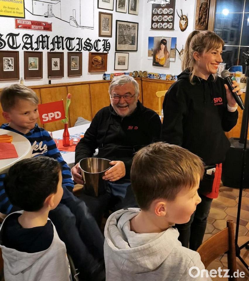 Die Service-Truppe des Ortsvereins hatte sich mit neuem Outfit, bedruckten Hoodies mit dem Slogan „Für Dich“, herausgeputzt. Die „Beßenreuther-Brothers“ Christian und Patrick alias „d'Hohlweglauerer“ spielten zünftig auf. Deren drei Neffen fungierten zusammen mit Seniorenbetreuer Willy Koegst als Glücksquartett und zogen die Lose für das Bierfass und den begehrten Hauptpreis, eine Fahrt zum Bundestag nach Berlin. Über diesen freute sich der junge Etzenrichter Niko Achtert. „Die Stimmung war gut, das Essen nahezu ausverkauft und einige hielten bis nach Mitternacht durch“, bilanzierte Vorsitzende Moni Waldeck.