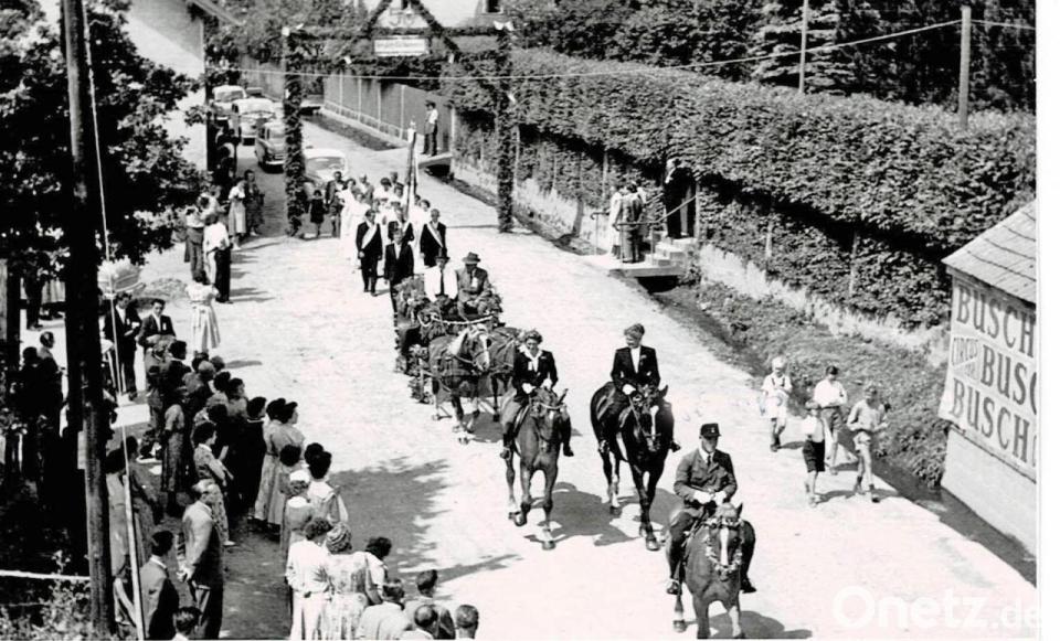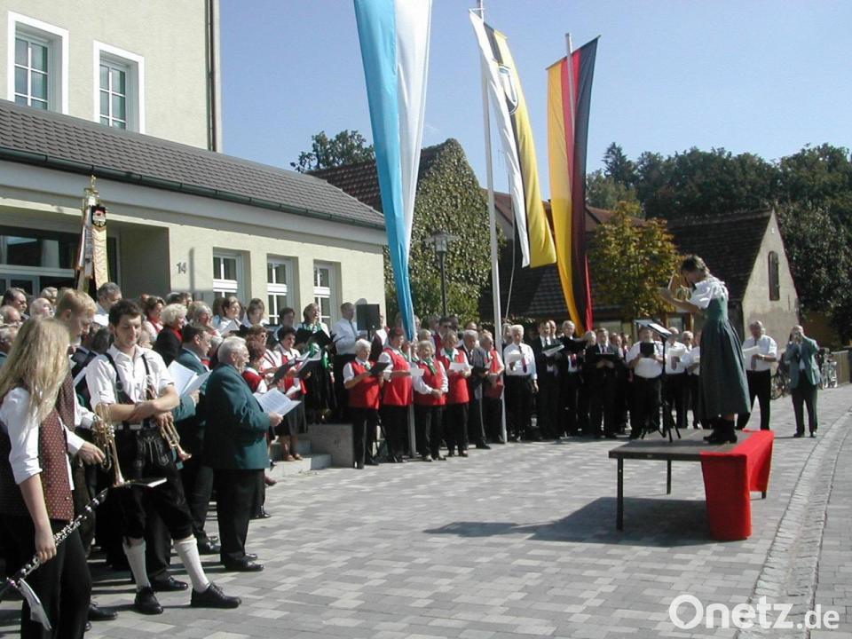 1956 stand zum 50. Gründungsjubiläum eine Fahnenweihe an. Der Hermann- und Riebelsaal sowie der Festplatz hinter der damals neuen Schule waren geschmückt und Triumphbögen aufgestellt. Festreiter und eine Kutsche mit Gründungsmitgliedern führten einen Festzug an. Der Festplatz war mit 1700 Sitzplätzen überfüllt. Von damals bis 1991 leitete Franz Schmidt aus Weiden den Chor mit großem Erfolg. Faschingsbälle, Sommernachtsbälle, Liederabende, Gartenfeste, Adventskonzerte und noch so vieles hat der Gesangverein bereichert. Fortan feierten die Sänger alle zehn Jahre Jubiläumsfeste und werteten das Vereinsleben kulturell auf.