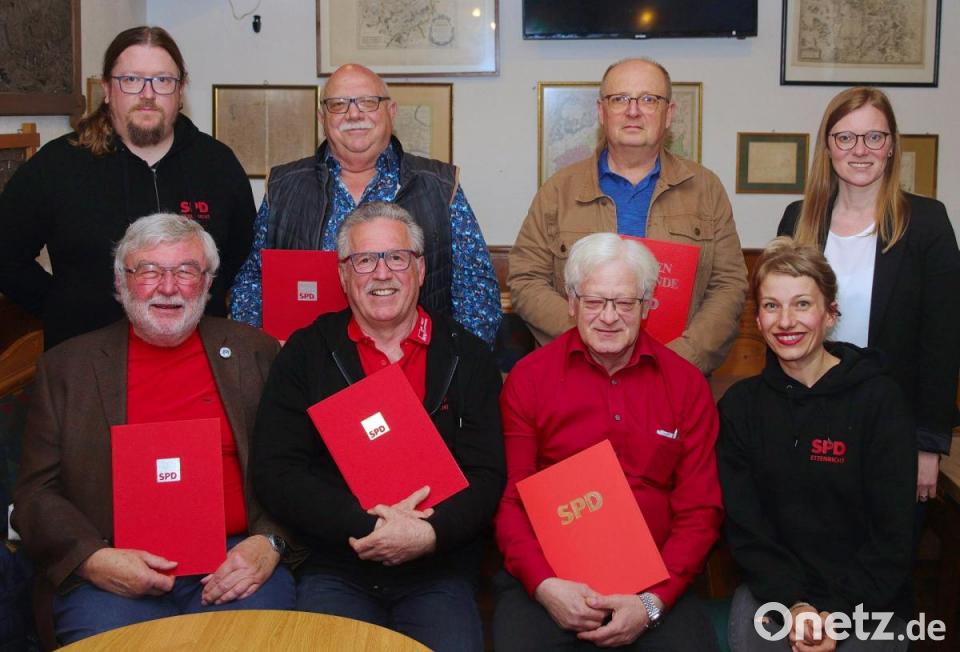 Ehrungen, Referate zu aktueller Politik, Jahresberichte und Delegiertenwahl standen auf der Agenda zur Jahreshauptversammlung der SPD Etzenricht im Gasthaus Hermann. Der Vorstand hatte im Vorfeld eine künftig allgemeingültige Vorgabe für Ehrungen erstellt und ließ diese von den Mitgliedern per Beschluss absegnen. Gewertet wurden Funktionen im Vorstand, Zugehörigkeit im Gemeinderat oder spezielle Tätigkeiten im Sinne der SPD. Auf Basis der Vorarbeit zeichnete die Doppelspitze des Ortsvereins, Monika Waldeck und Ralf Teichmann, zwei ihrer Vorgänger mit dem Titel Ehrenvorsitzende aus: Franz Cermak, aktuell Hauptkassier, und Rudolf Teichmann, zurzeit SPD-Fraktionssprecher im Gemeinderat. Ebenso nach dem neuen Reglement folgte die Ernennung von Willy Koegst und Rudi Walberer zu Ehrenmitgliedern.