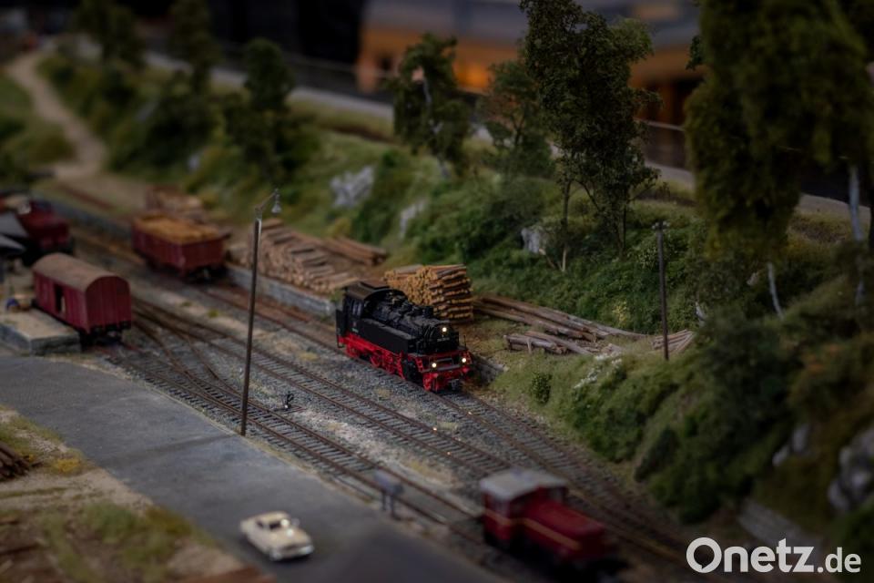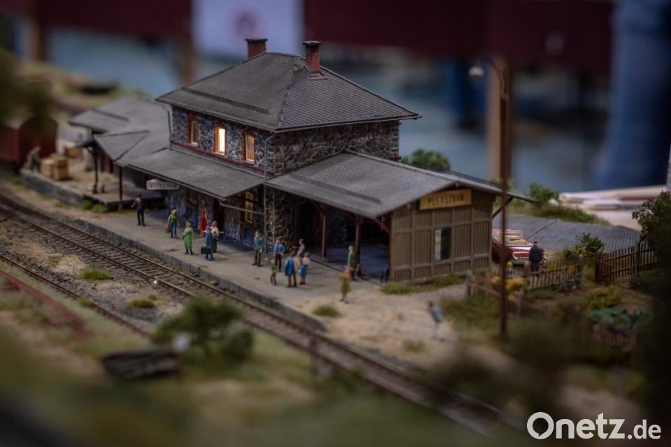 Als Gastverein waren die Modelleisenbahnfreunde Pleystein eingeladen, die ein eigenes Modul zeigten. Dort fanden sich auf kleinem Raum schön gestaltete Bilder, welche die Eslarner Bocklbahn mit Bahnhof und Holzverladezug wiederaufleben ließen.