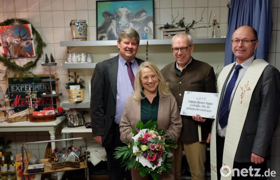 Christine Friedl hegte schon seit langer Zeit den Wunsch, diesen Leerstand in einen Treff zum Verweilen zu verwandeln. Als dann das Schild „Laden zu vermieten“ im Schaufenster auftauchte, zögerte sie nicht lange. Von der Vermieterfamilie Bergler bekam sie für ihre Idee volle Unterstützung. Mit Hilfe von einigen Freundinnen verwandelte sie die Metzgerei in einen kleinen Laden – einen sogenannten Pop-up-Store. Er erhielt bei einer kleinen Eröffnungsfeier durch die Ortsgeistlichen Heribert Englhard und Hans-Peter Pauckstadt-Künkler den Segen.