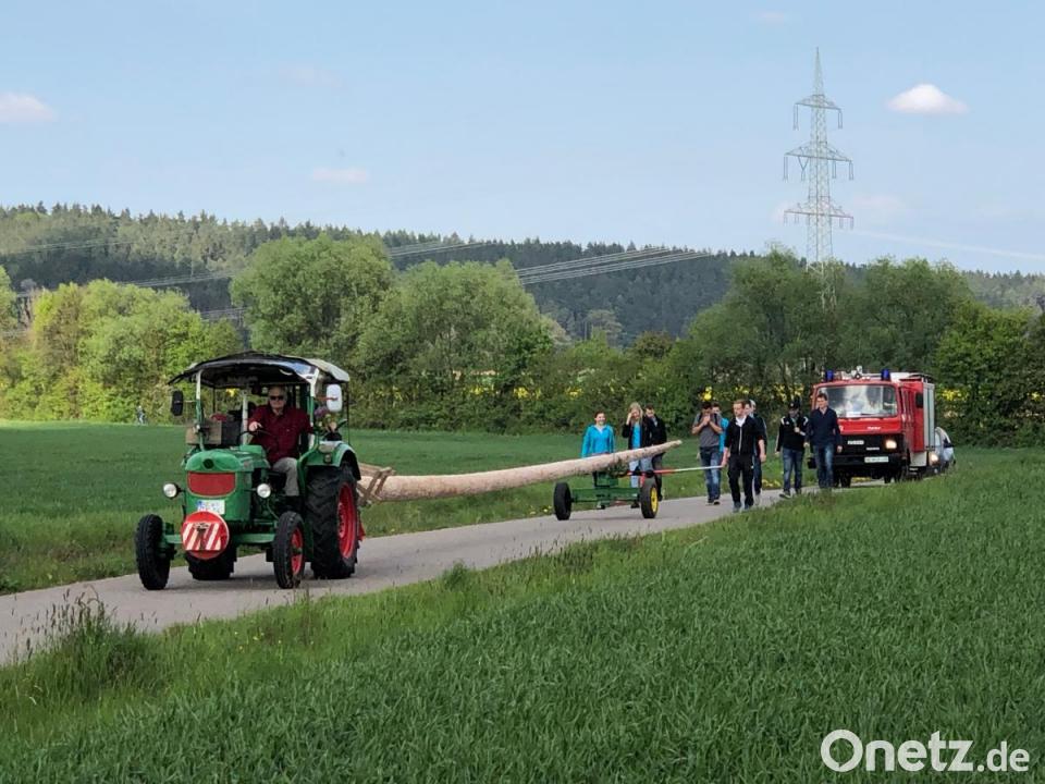 Unter Geleit einiger Vereinsmitglieder holte Michael Heinze mit seinem Traktor den Baum aus dem gut gehüteten Versteck und brachte ihn unter großem Hallo zum Etzenrichter Dorfplatz.