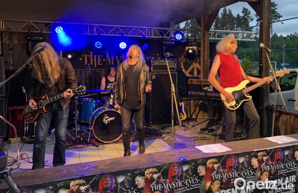 Was einst die Eltern schockte und die Jugend begeisterte, vereint nun die Generationen. Dieses Motto haben sich die Rockmusiker auf ihre Fahne geschrieben und ließen die Erinnerungen an die Formation „The Mystic Eyes“ aus Regensburg aufleben. Dabei fokussierte die Band ihre Cover auf legendären 60er- und 70er-Jahre. „Whole lot a love“ von Led Zeppelin oder „Child in time“ von Deep Purple zählten ebenso zum ausgeklügelten Repetoire wie Nummern von Bob Dylan, etwa wie „Like a rolling stone“.