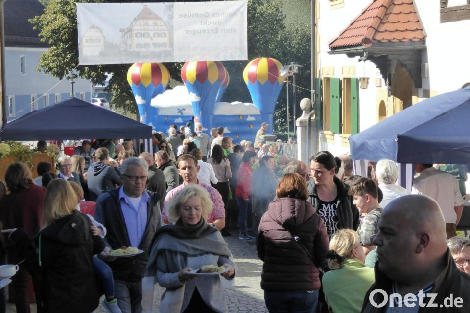 Sie konnten aus einem reichen Angebot kulinarischer Leckerbissen und landwirtschaftlicher Lebensmittel wählen. Nach den Spezialitäten zum Mittagessen (wir berichteten) standen nachmittags Zwiebelkuchen und Pizzabrot aus dem Backofen und die verschiedensten Kuchen und Torten zu Kaffee und Tee bereit. Für die Getränke sorgte die Brauerei Bruckmüller aus Amberg, betreut vom Außendienstmitarbeiter Roland Bodner. Während die Erwachsenen gerne an den Tischen im Freien und im Festzelt Platz nahmen und sich von der „Neisteder Zoiglmusi“ unterhalten ließen, vergnügten sich die Kinder auf der großen Hüpfburg.