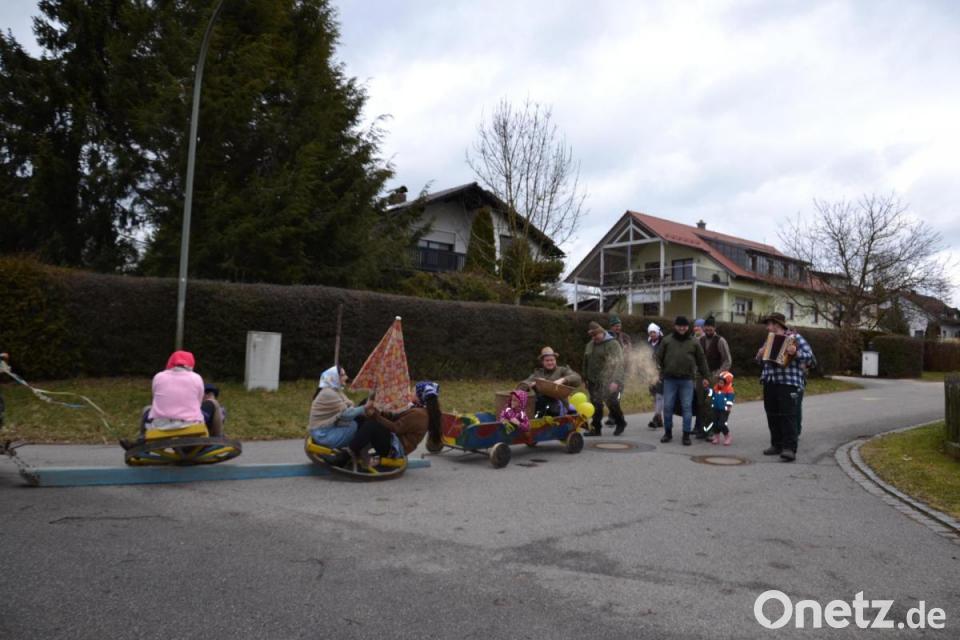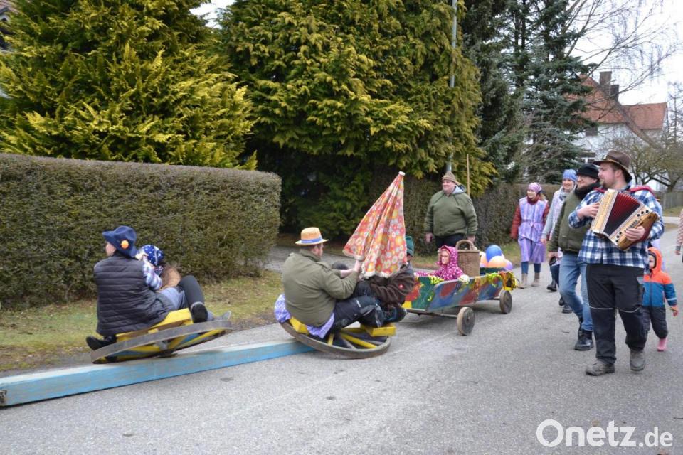 Für die musikalische Begleitung sorgte Vereinspräsident Felix Ach und Andreas Hofmeister aus Tröbes mit ihren „Quetschn“. Mit Helau-Rufen zogen die Narren durch das Dorf. Die meiste Arbeit hatte dabei Michael Steinhilber, der am Pflug stand. Auf dem Weg durch das Dorf hatten einige Anwesenbesitzer Haltestationen mit frischen Kücheln und flüssiger Nahrung eingerichtet. Nach dem „Asackern“ trafen sich alle im Gasthaus Ach zum Feiern des Ereignisses und zum gemütlichen Beisammensein. Dabei wurde „As`sgunga“ und „As`spült“, das heißt, es wurden unter Leitung von Jonas Weiß über das Dorfgeschehen 2022 heitere Sketche gesungen und gespielt. Viele Besucher vom Ort und auch Auswärtige waren gekommen.